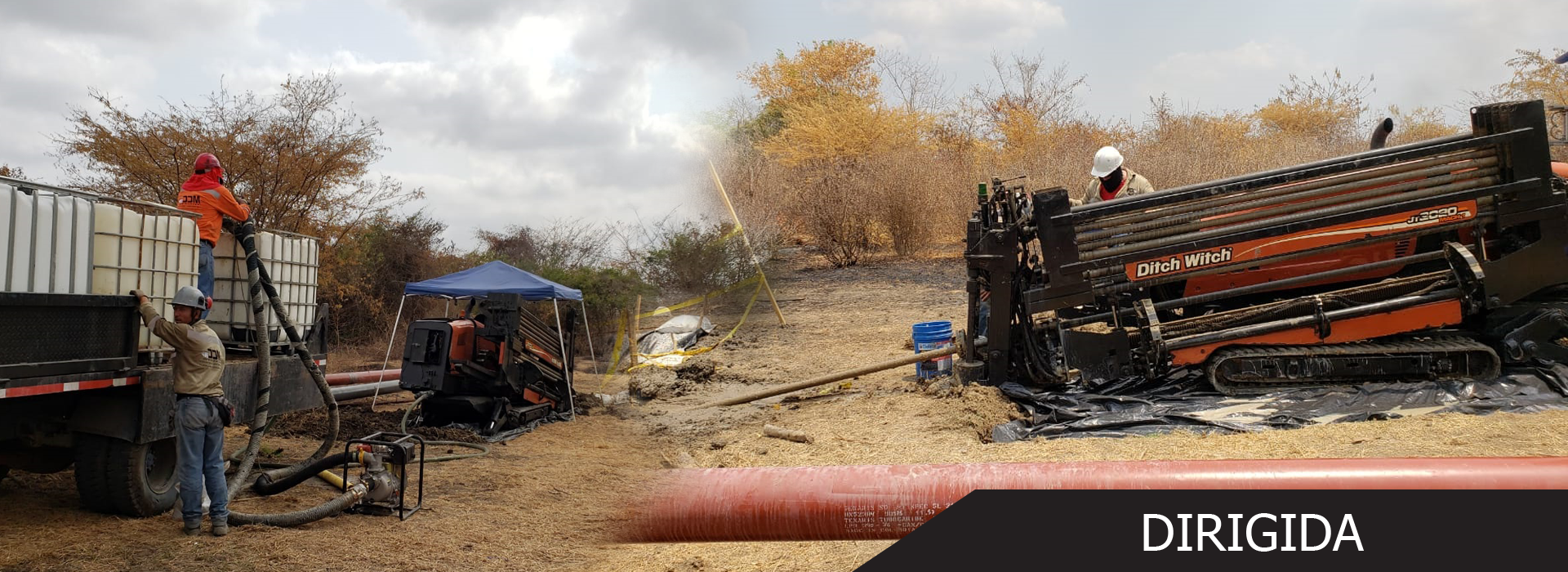 Las máquinas dirigidas son equipos digitales de perforación que permiten la instalación de tuberías de polietileno o acero cuando se requiere cruzar grandes ríos, montañas, o cualquier obstáculo natural, ya que la utilización de lodos bentoníticos permite perforar bajo condiciones de nivel freático alto. Esta tecnología se usa para diámetros hasta de 36 pulgadas con longitudes que superan los 100 metros.